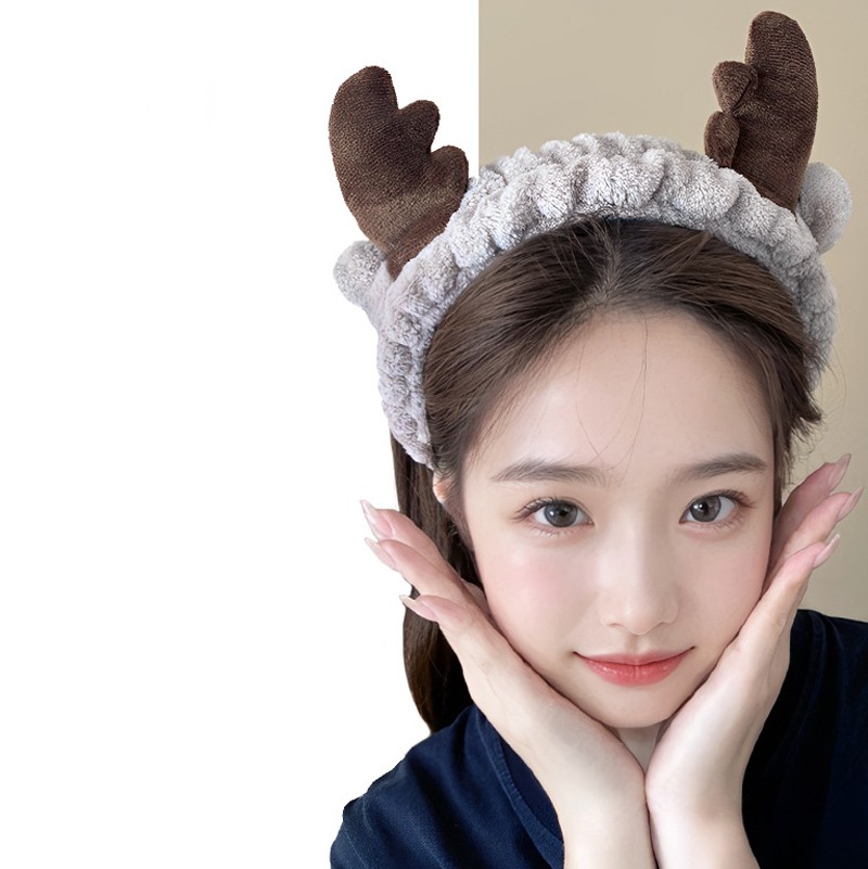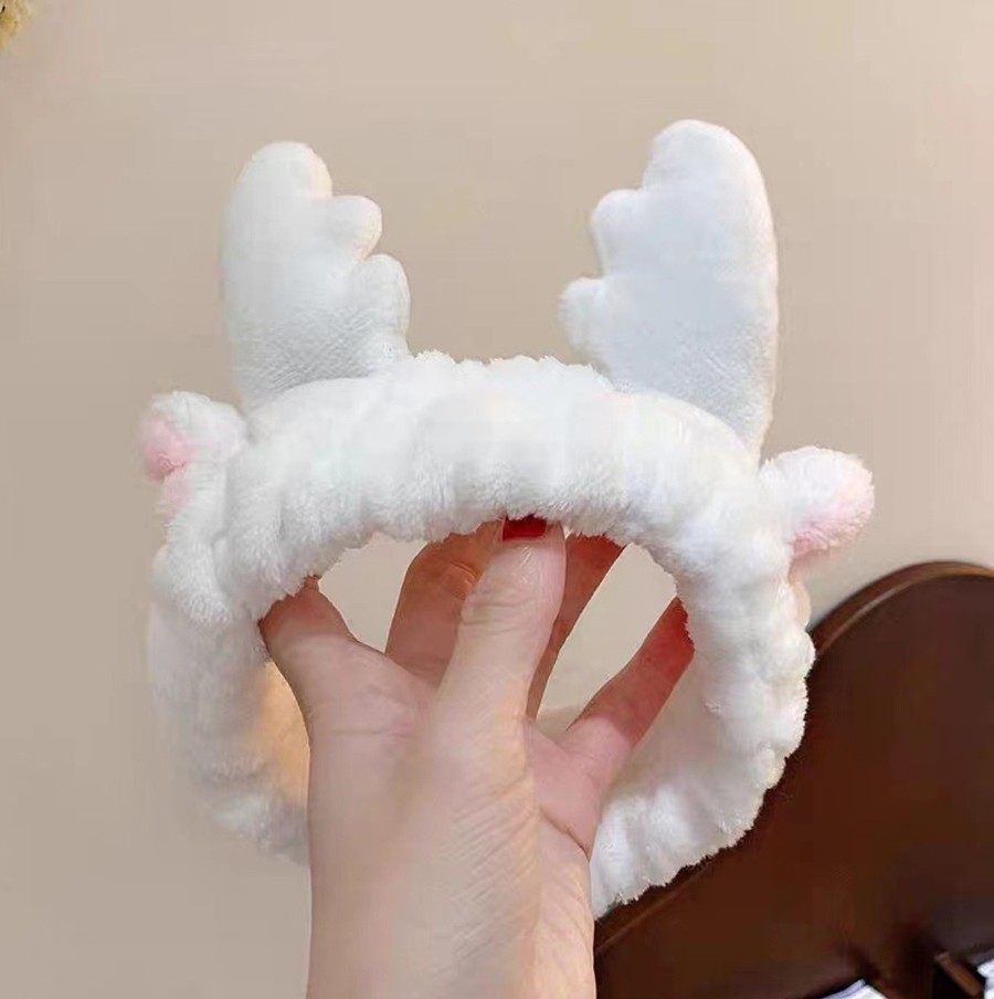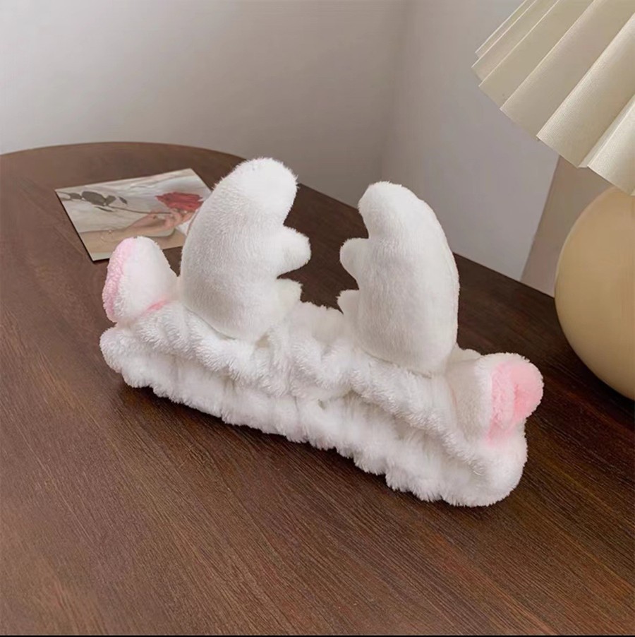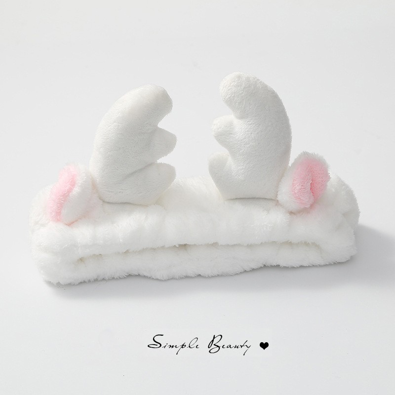 Повязка косметическая плюшевая Оленьи рожки с ушами, Цвет Белый 3 фото