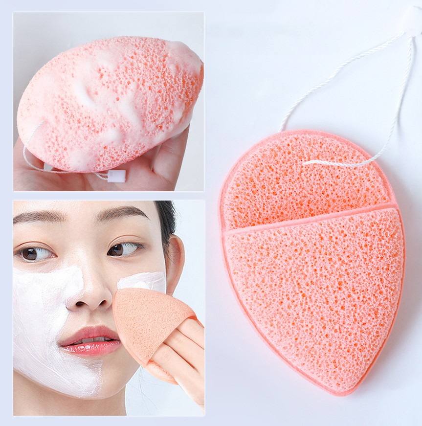 Губка-спонж для умывания капля с кармашком на веревке 5 фото