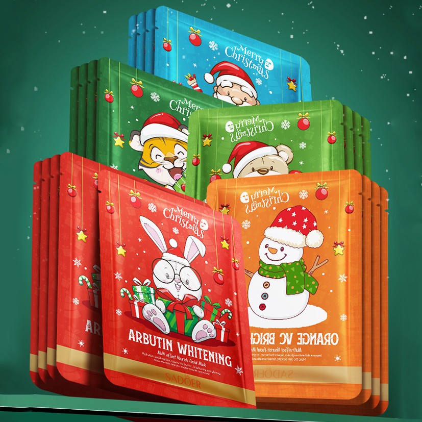 Тканевая маска для лица с витамином C Новогодняя СНЕГОВИК Sadoer 7 фото