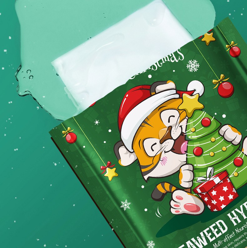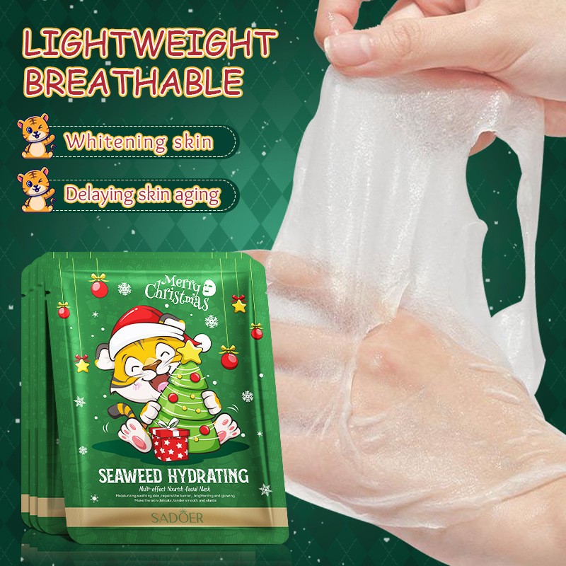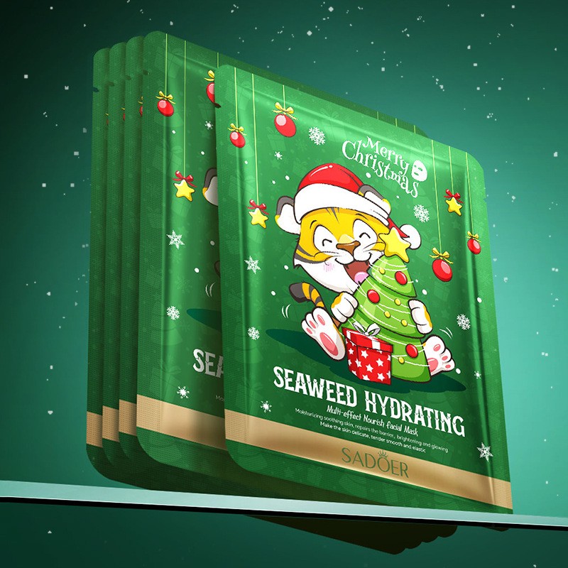 Тканевая маска для лица с морскими водорослями Новогодняя ТИГРЕНОК Sadoer 6 фото