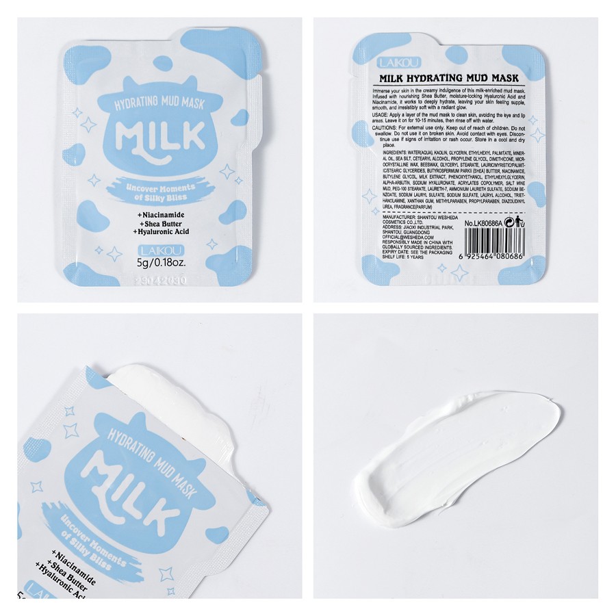 Маска для лица с молочными протеинами и каолином очищающая Laikou, саше 5 гр. 6 фото