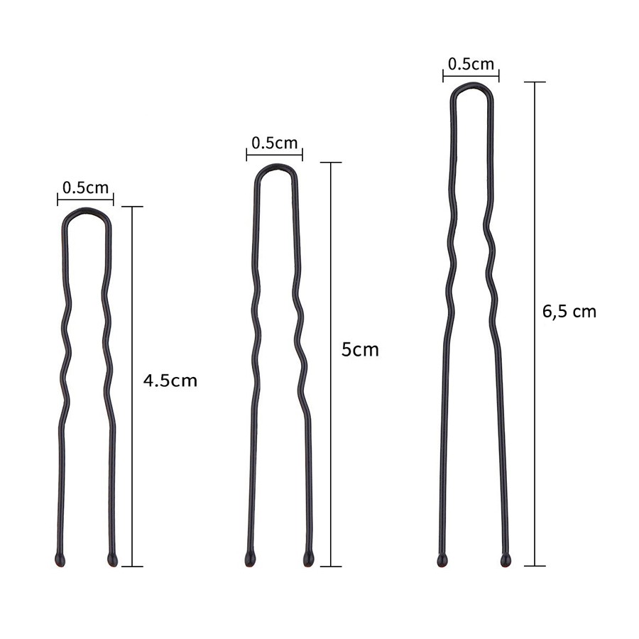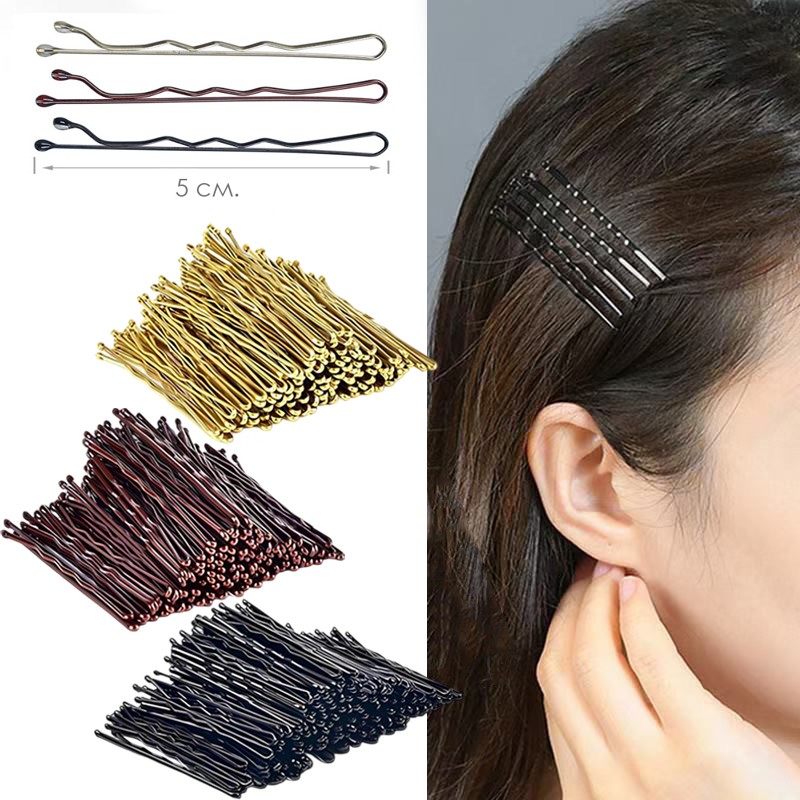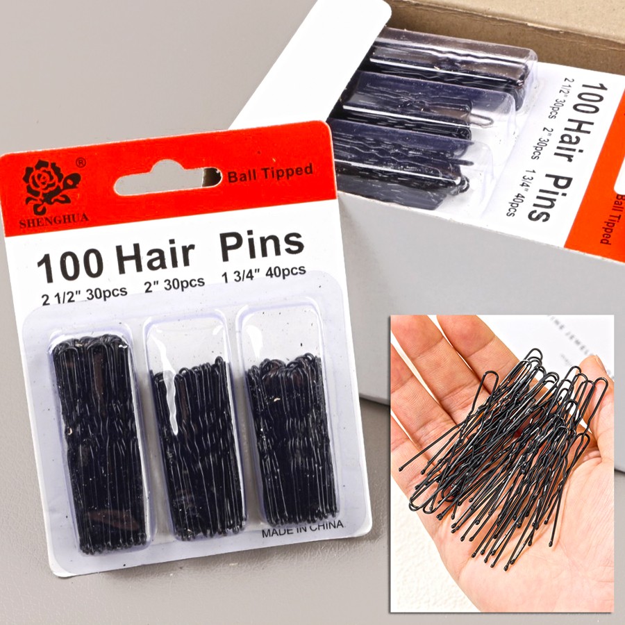Набор шпилек для волос 100 штук 3 размера. Цвет: Черный 3 фото