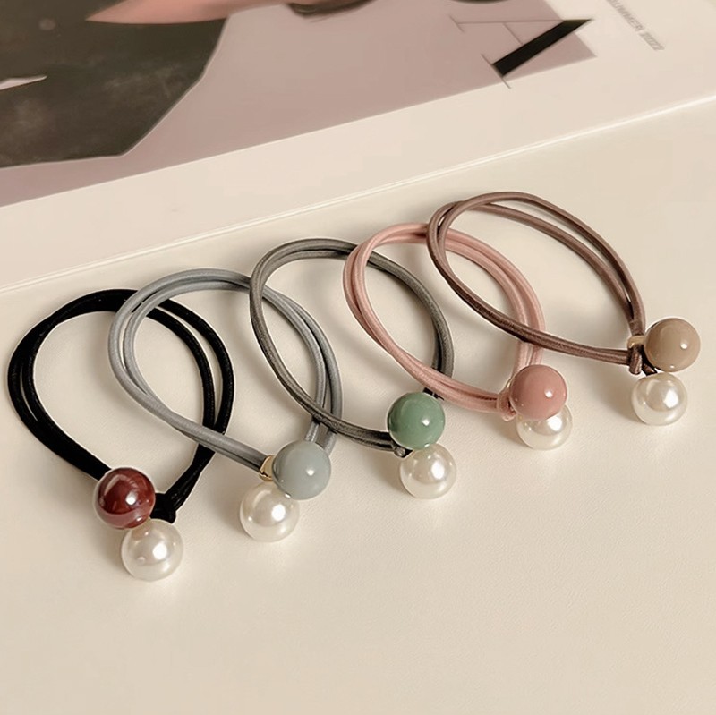 Набор резинок для волос с прозрачными бусинами 5 штук 4 фото