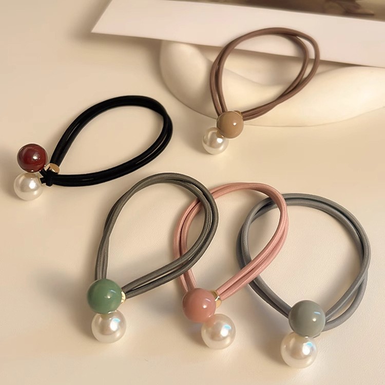 Набор резинок для волос волнистые с жемчужной бусиной 5 штук 5 фото