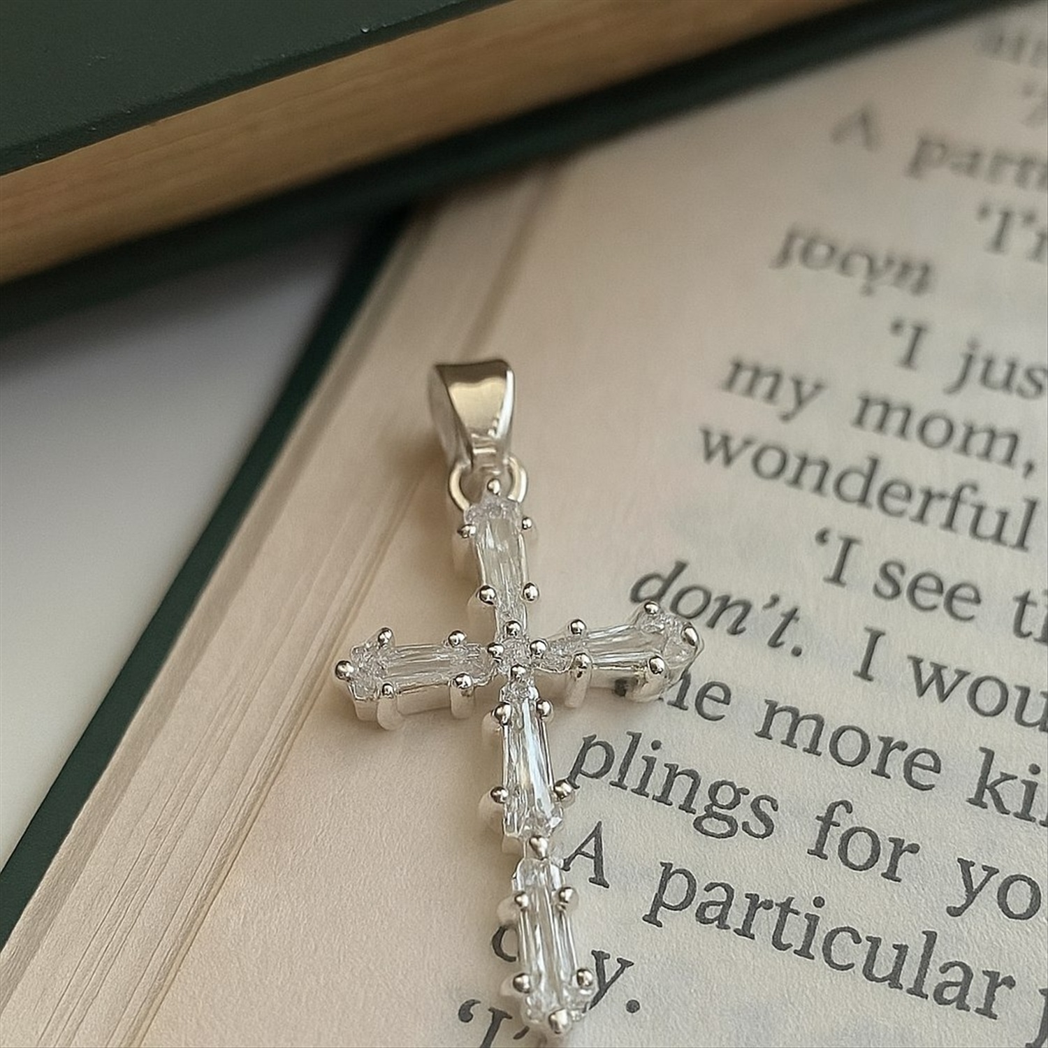 Кулон крест, покрытие: посеребрение, вставка: цирконы, арт.007.073