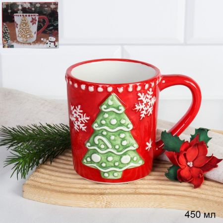Кружка 450 мл Елка / YJ2505A /уп 48/ новогодняя/подарочная упаковка