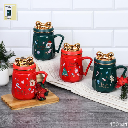 Кружка новогодняя с крышкой /450 мл/ 312 /уп 60/