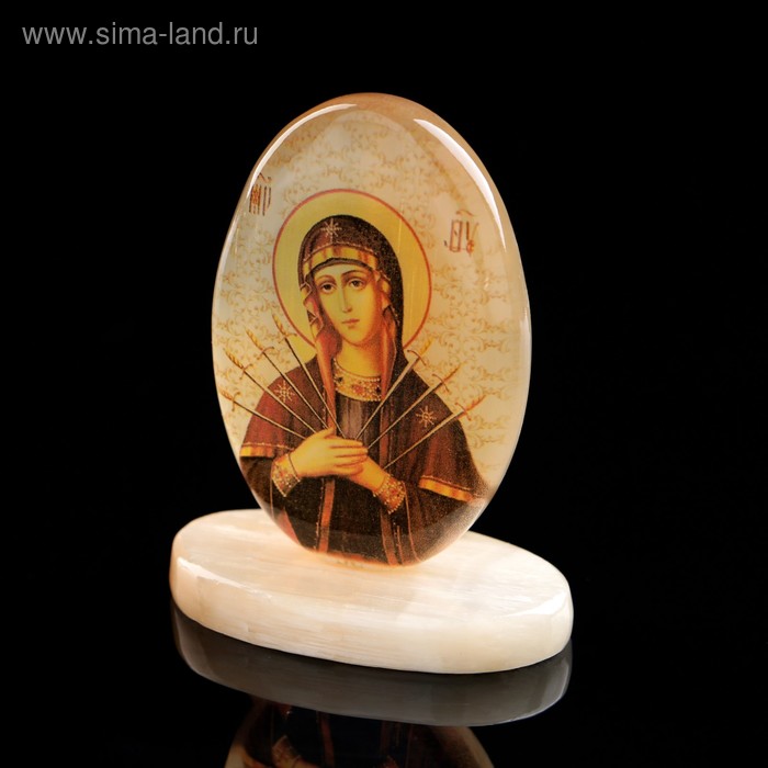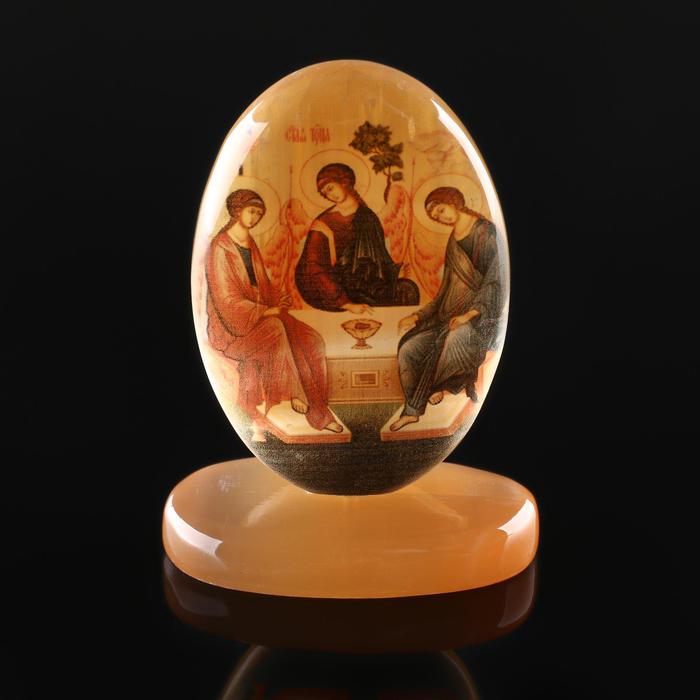 Икона «Святая Троица», овал на поставке с фоном, настольная, селенит
