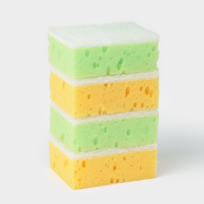 Набор губок для мытья посуды Raccoon «Ренессанс», 4 шт., 9×6.5×3.5 см, крупнопористый поролон, жёлтый, зелёный