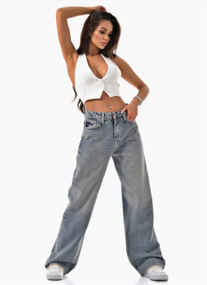 Женские джинсы со стразами на высокий рост CRACPOT 10 фото