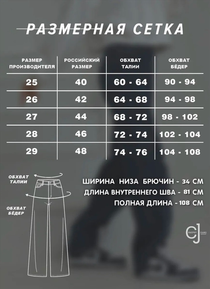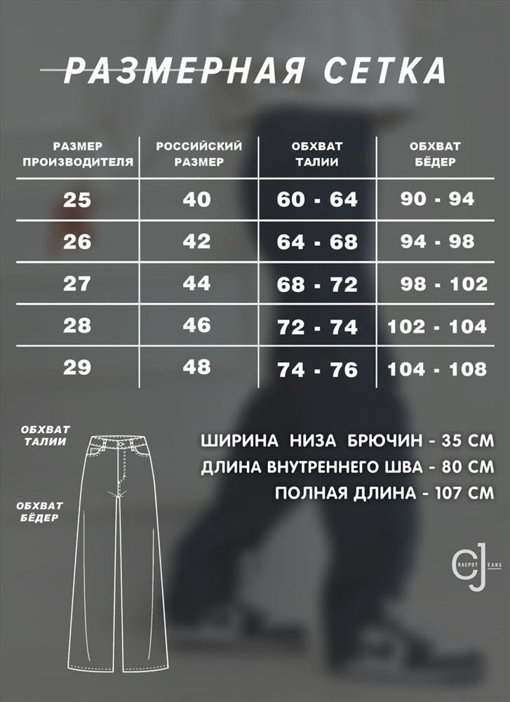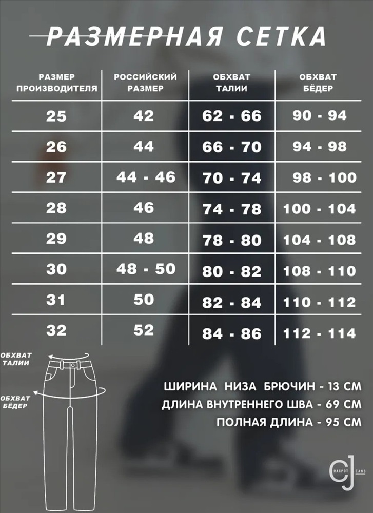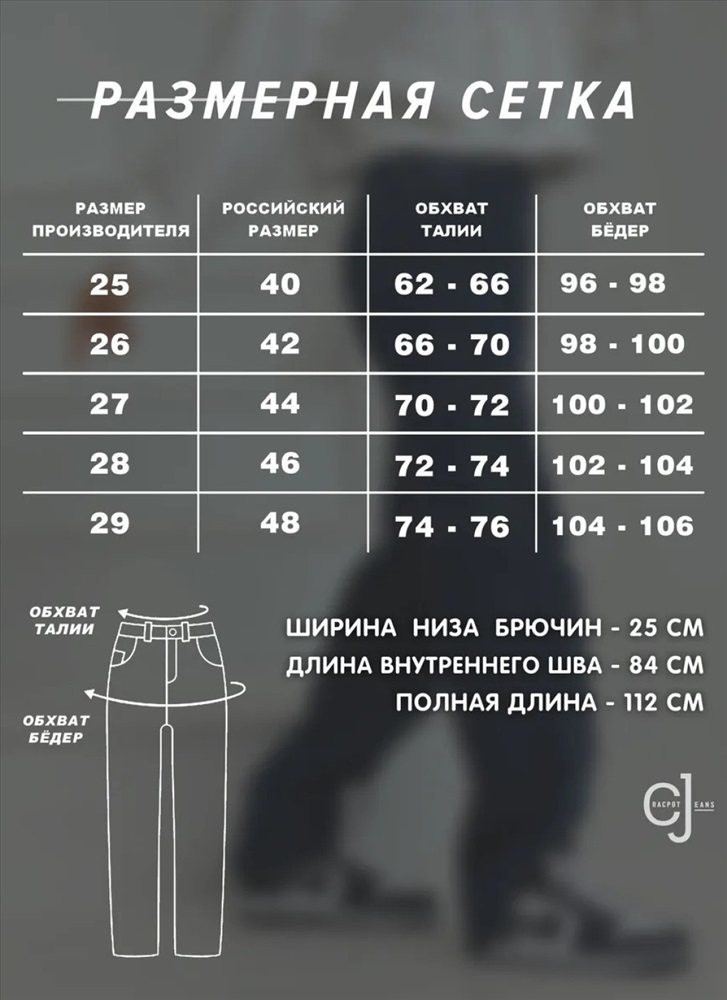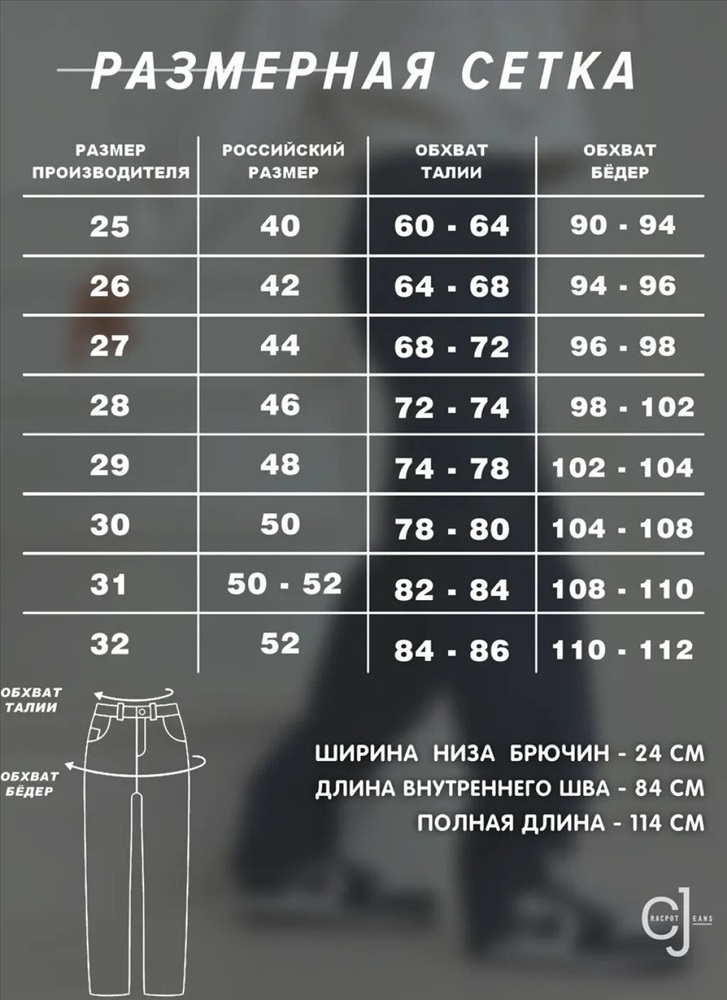 Размер: 25-(42), 28-(46), 29-(48), 30-(48-50), 31-(50), 32-(52)