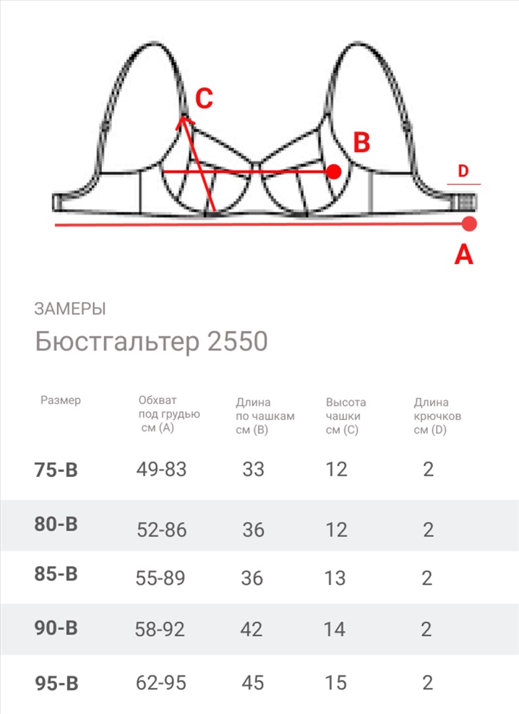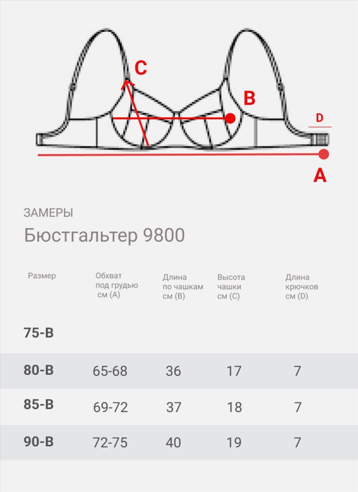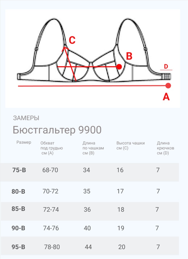 Размер: 75-B, 80-B, 85-B, 90-B, 95-В