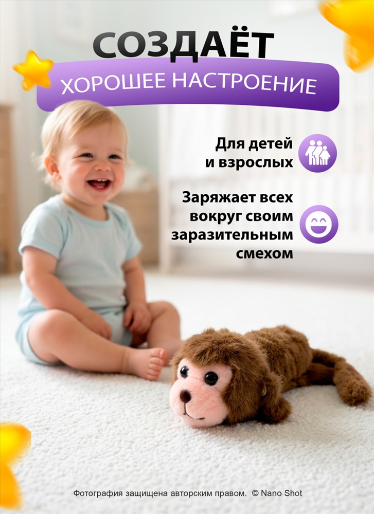 Мягкая интерактивная игрушка Обезьяна хохотушка 4 фото