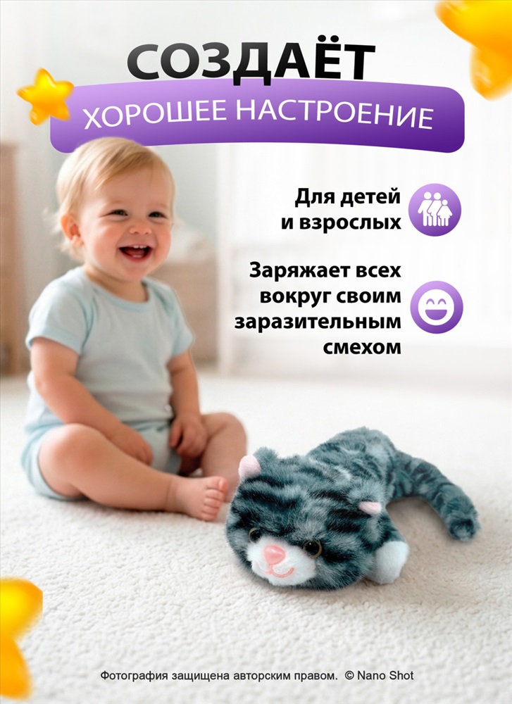 Мягкая интерактивная игрушка Кошечка/ Кот хохотушка 2 фото