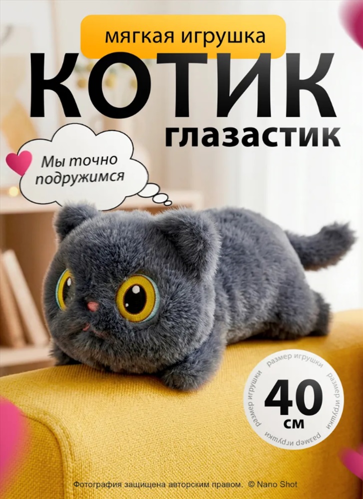 Котик мягкая игрушка, 40 см 3 фото