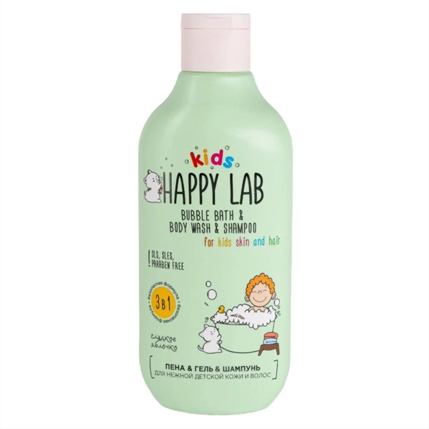 Happy Lab Kids Средство 3 в 1: пена, гель, шампунь для нежной детской кожи и волос / Сладкое яблочко, 300 мл 21351