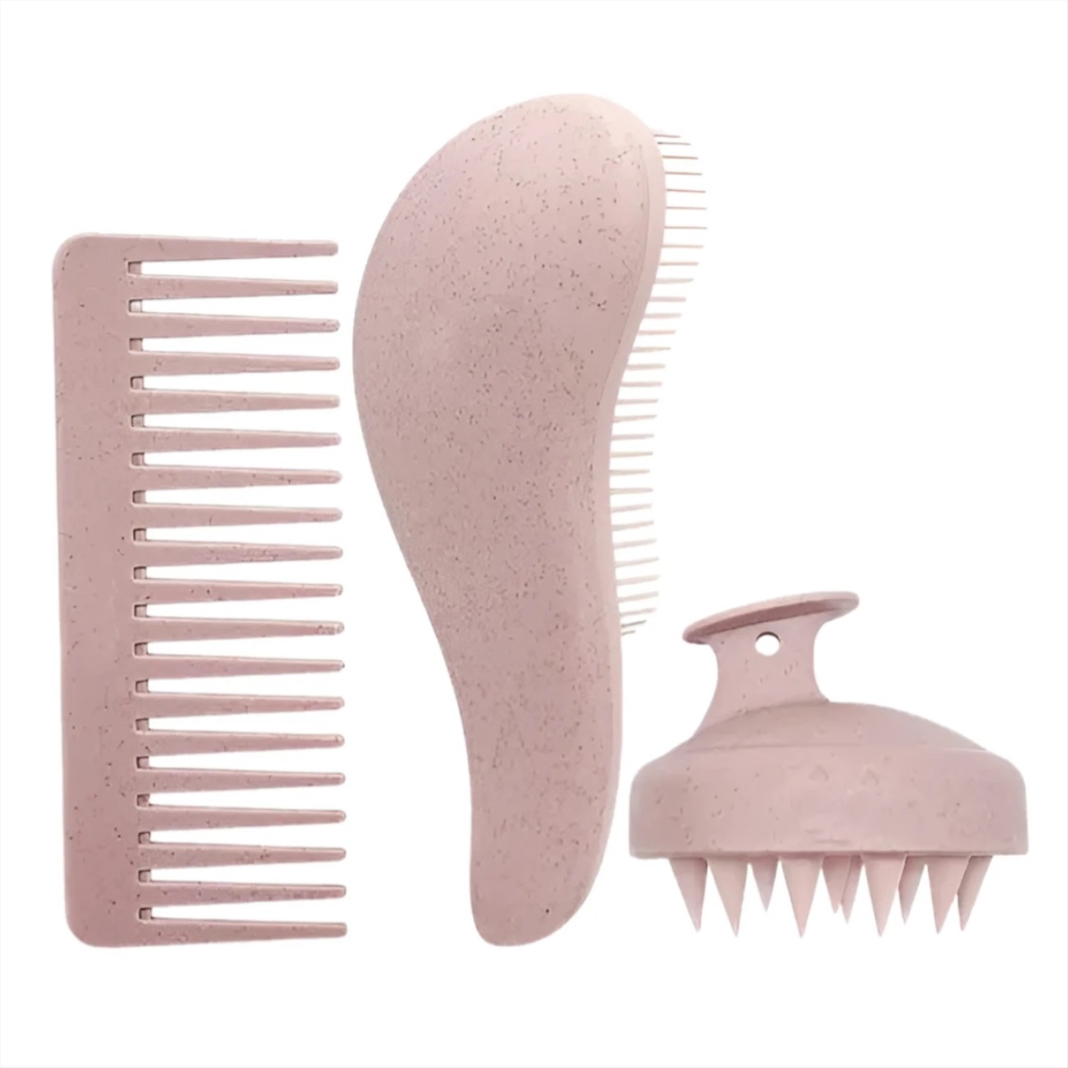 Kristaller Набор для волос: щетка-массажер для мытья головы, гребень, расческа-капля, розовый 27748