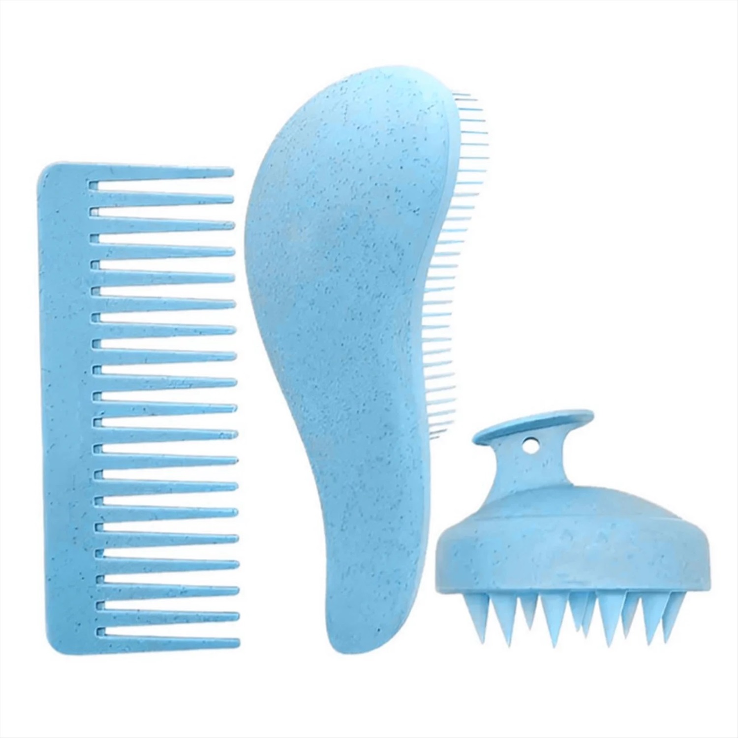 Kristaller Набор для волос: щетка-массажер для мытья головы, гребень, расческа-капля, голубой 27749