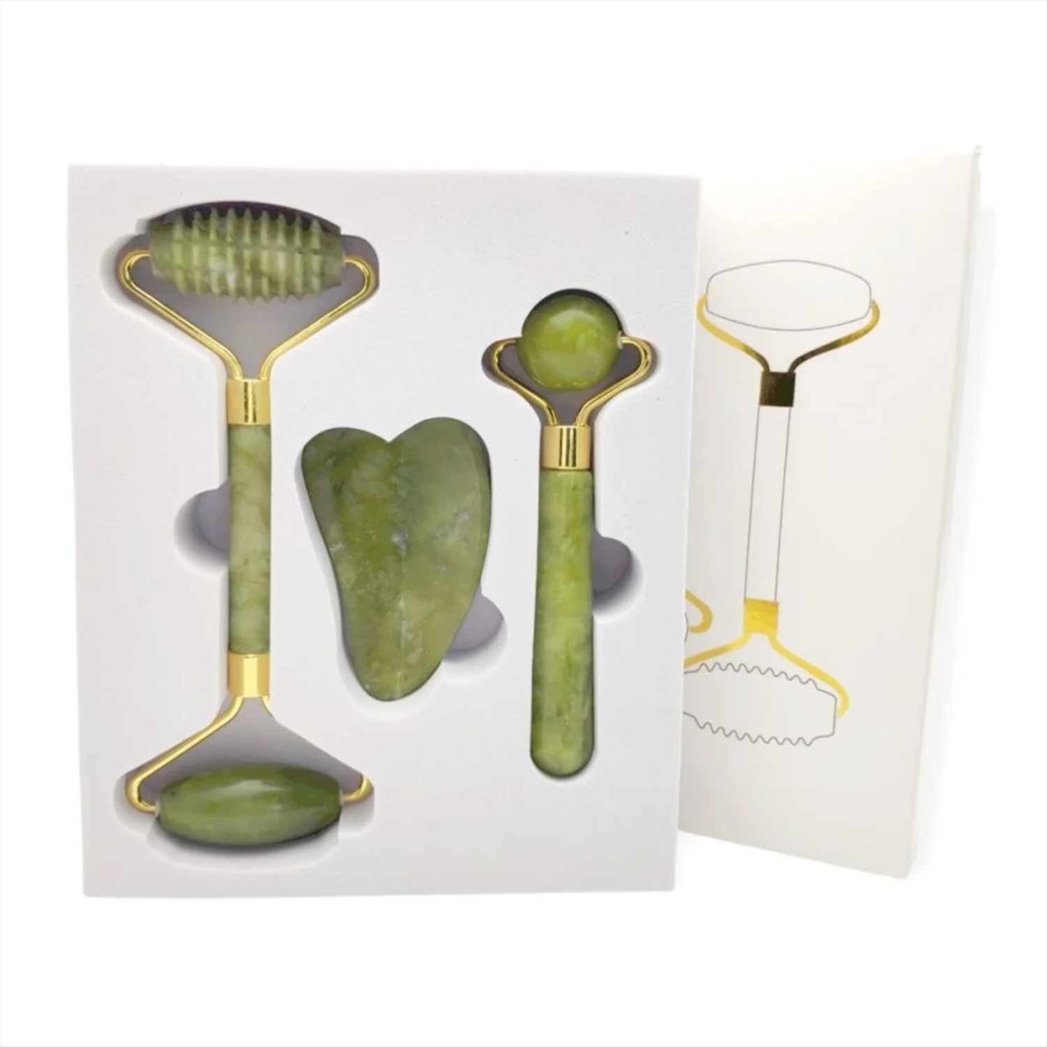 Nail Art Набор нефритовых массажёров, скребок Гуаша/ролик двусторонний 18475