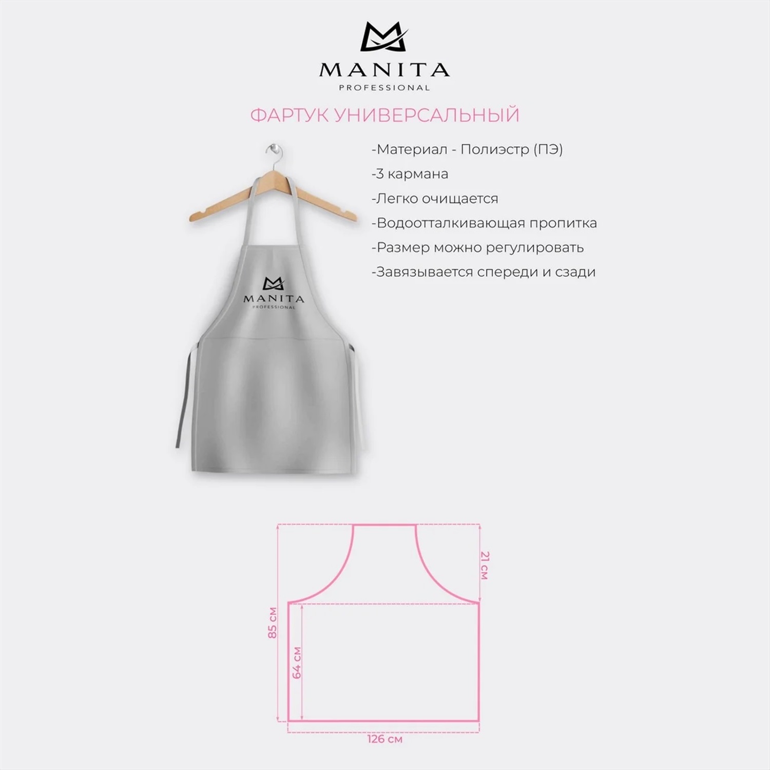 MANITA Фартук универсальный для мастера салона красоты, серый 23233 2 фото