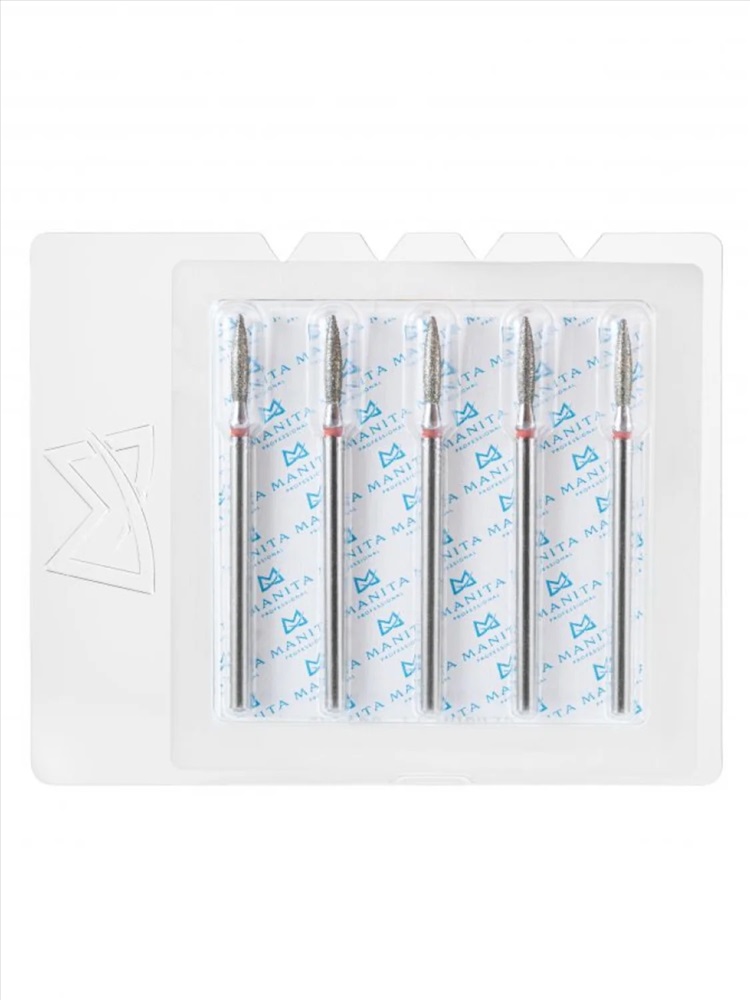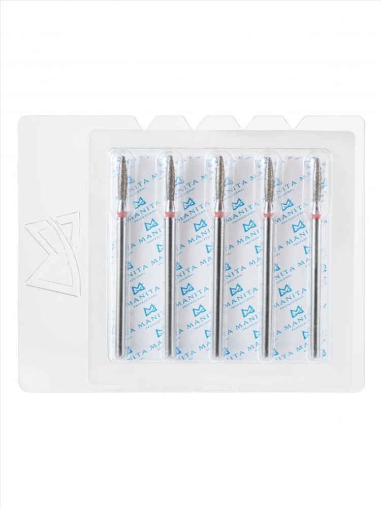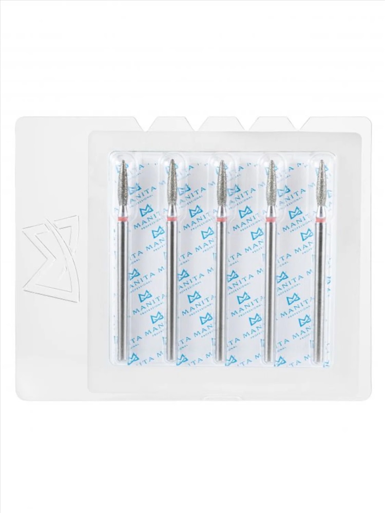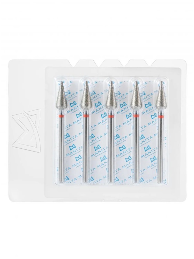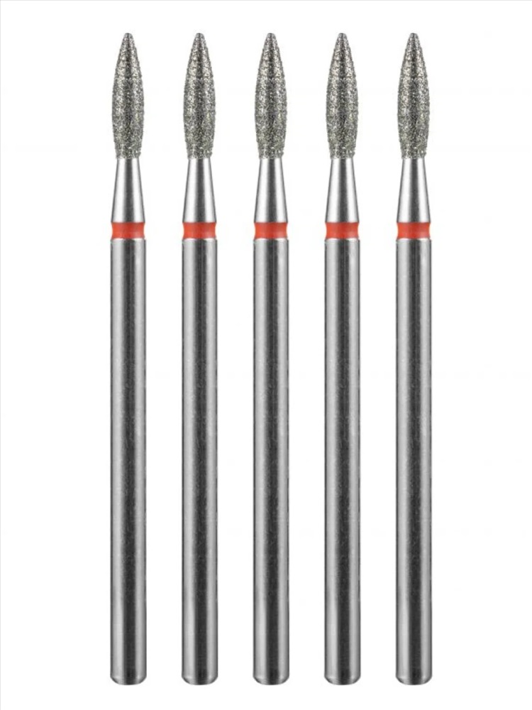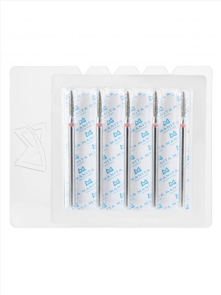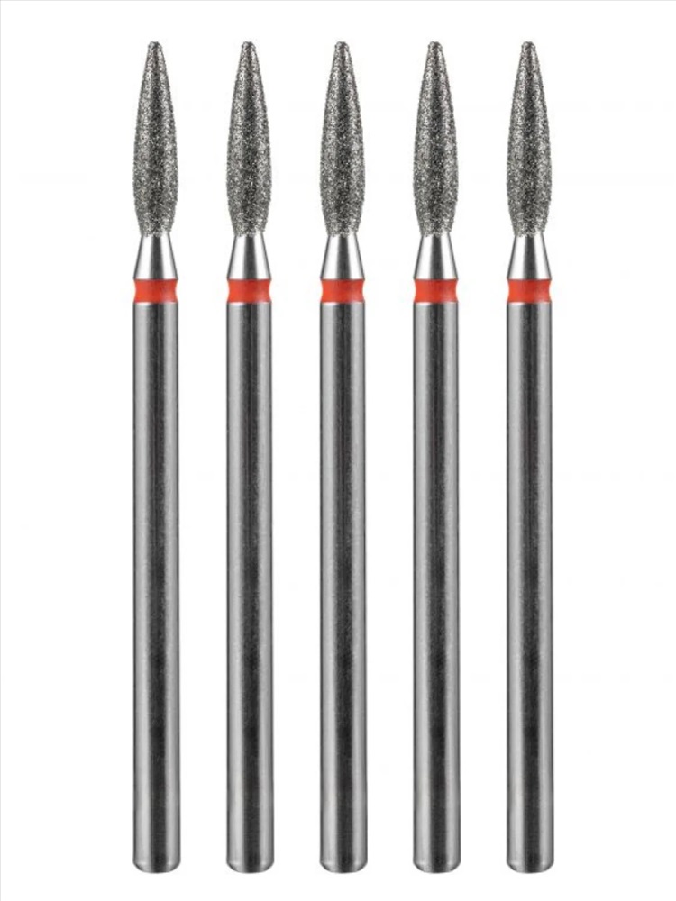 MANITA Фреза алмазная пламя острое удлиненное для аппаратного маникюра 856.104.243.100.021 ФАП-2.1 10М, красная насечка, ø 2,1 мм, 5 шт. 28342 4 фото