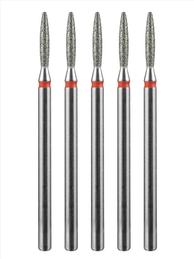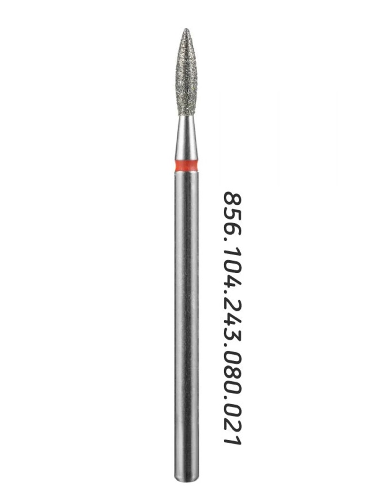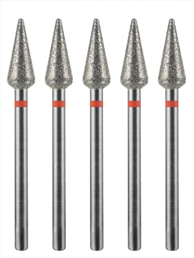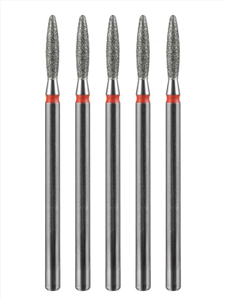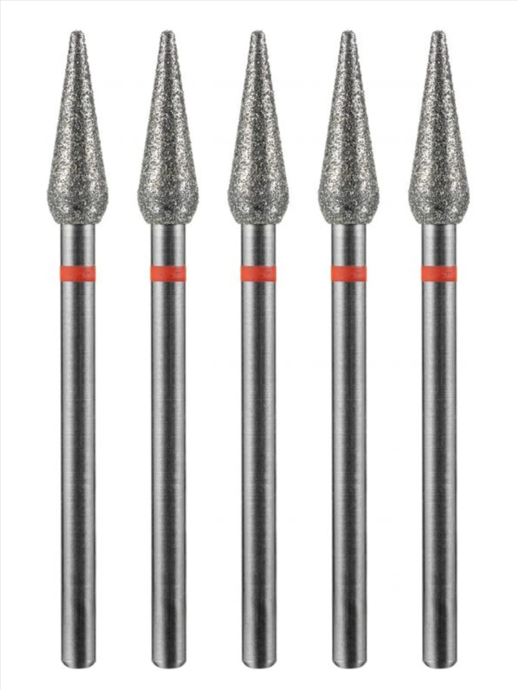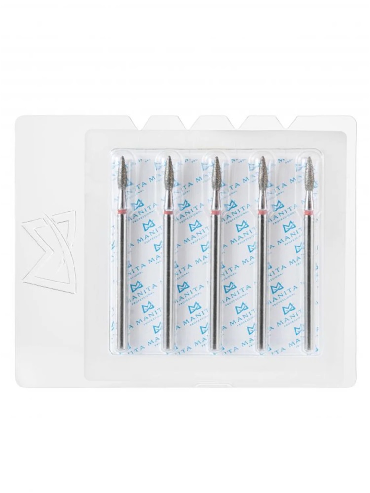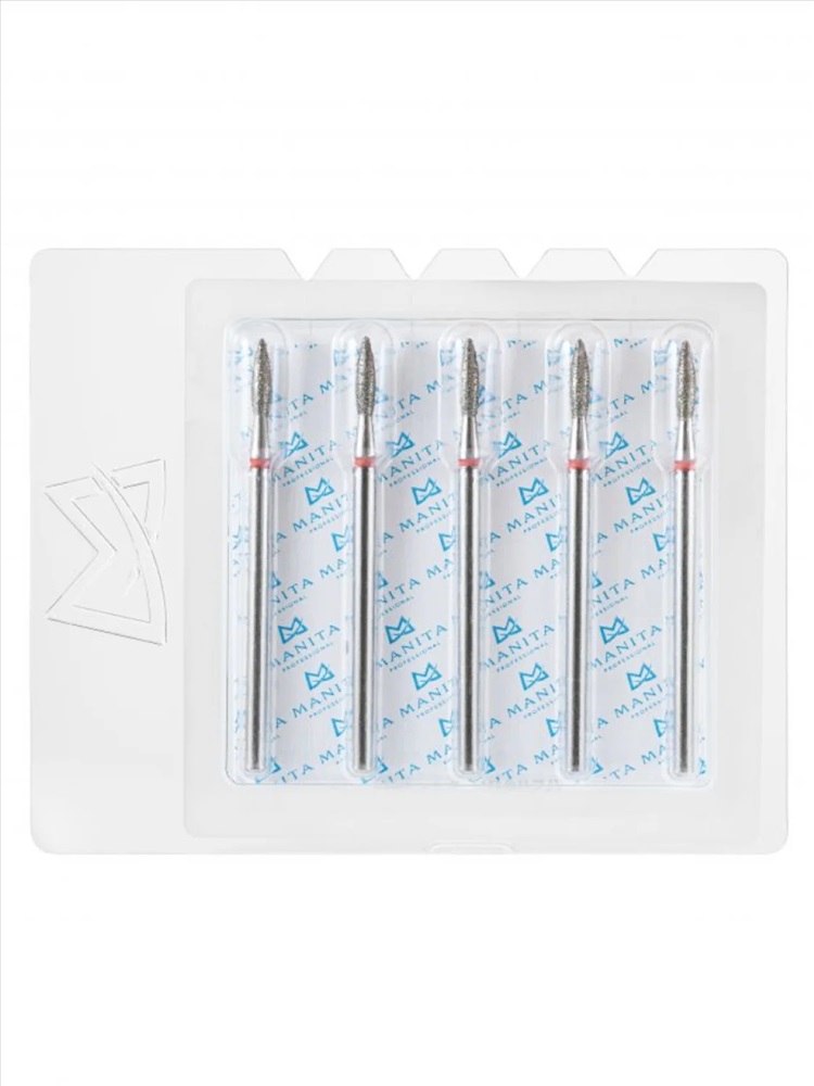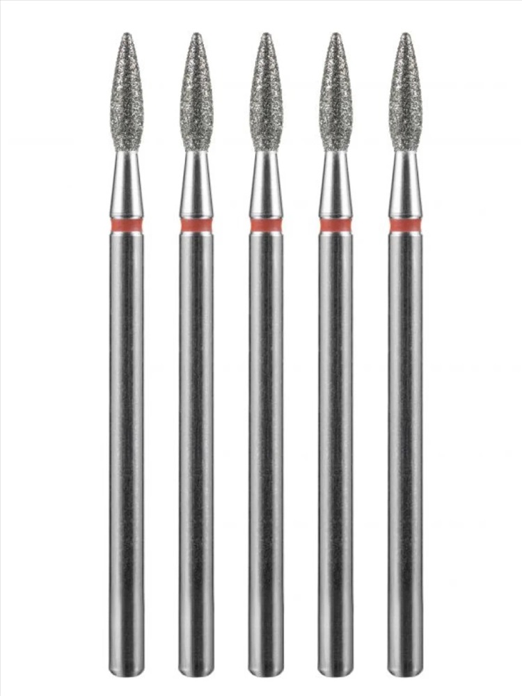 MANITA Фреза алмазная пламя острое удлиненное для аппаратного маникюра 856.104.243.100.021 ФАП-2.1 10М, красная насечка, ø 2,1 мм, 5 шт. 28342 4 фото