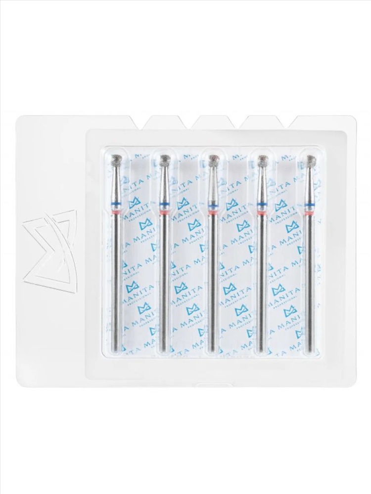 MANITA Фреза алмазная шар для аппаратного маникюра 866.104.001.048.050 ФАШ-5C, синяя насечка, ø 5 мм, 5 шт. 28355 2 фото