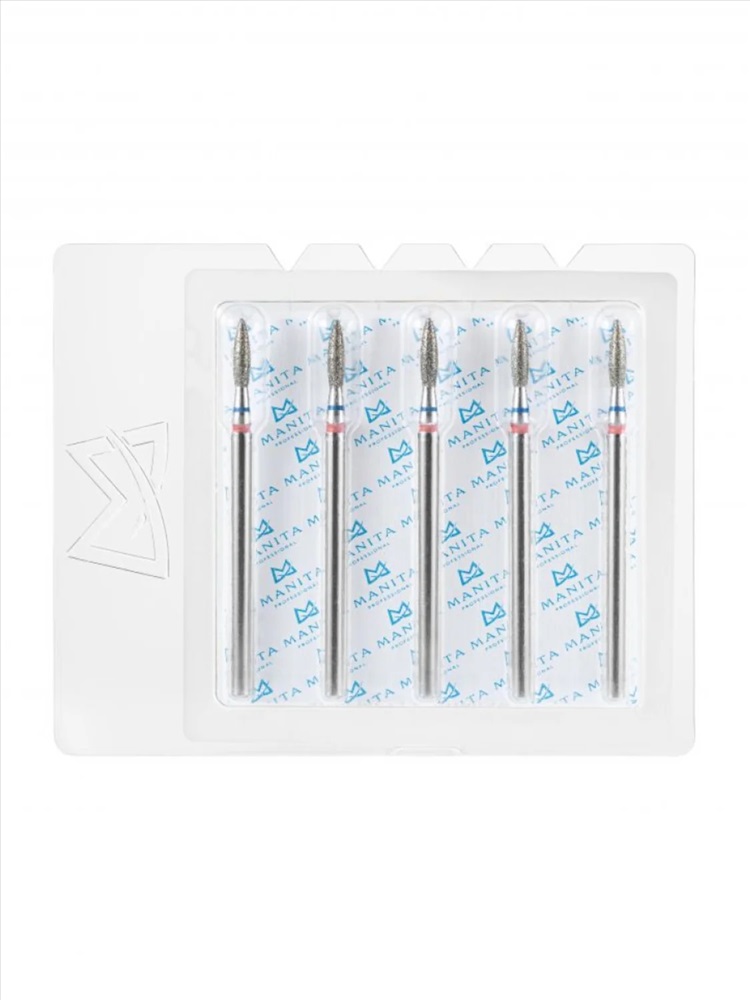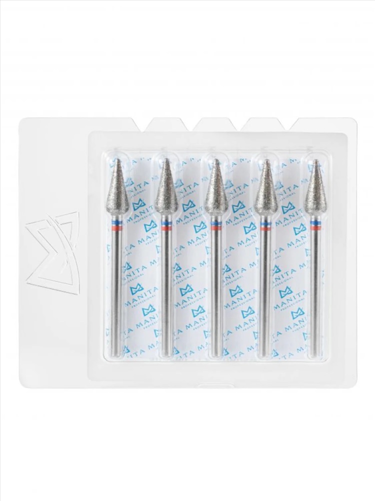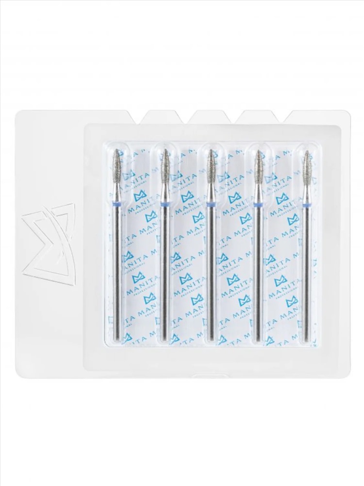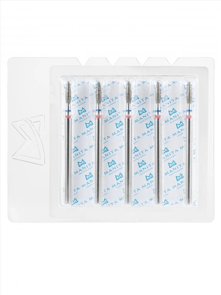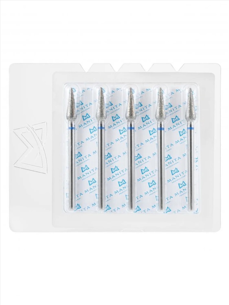 MANITA Фреза алмазная капля большая для аппаратного маникюра 866.104.260.120.040 ФАК-4,0 12С, синяя насечка, ø 4,0 мм, 5 шт. 28369 4 фото