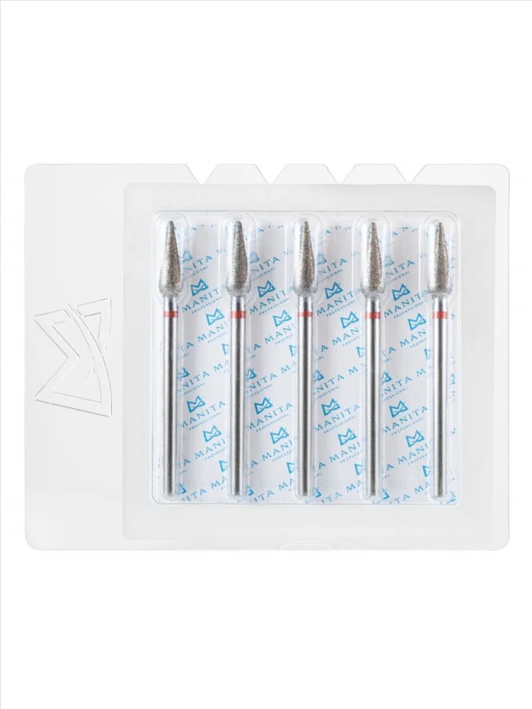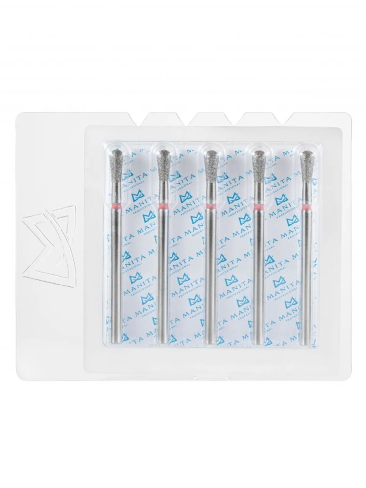 MANITA Фреза алмазная капля большая для аппаратного маникюра 856.104.260.125.050 ФАК-5,0 12,5М, красная насечка, ø 5,0 мм, 5 шт. 28348 4 фото