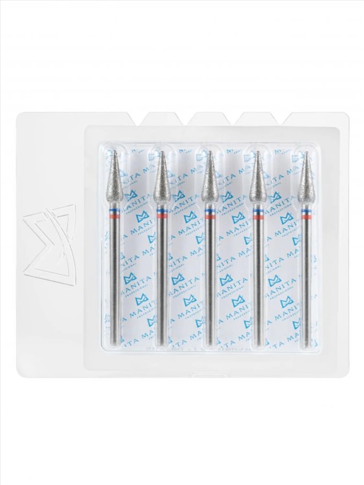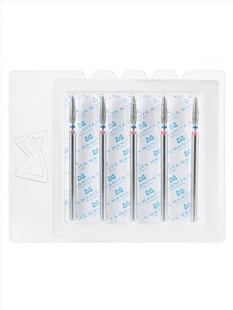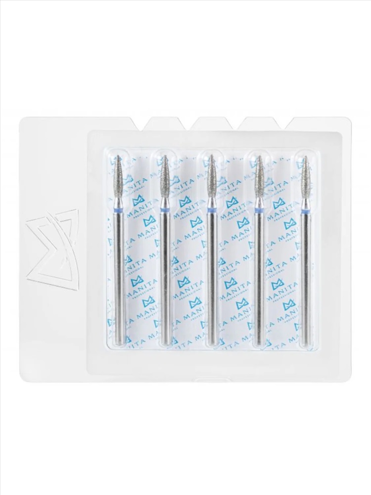 MANITA Фреза алмазная пламя острое для аппаратного маникюра 866.104.243.080.018 ФАП-1.8-8С, синяя насечка, ø 1,8 мм, 5 шт. 28359