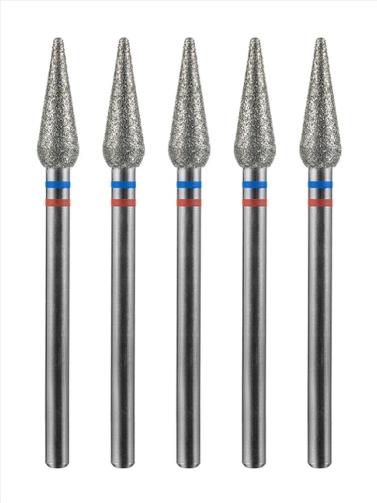 MANITA Фреза алмазная капля большая для аппаратного маникюра 866.104.260.125.050 ФАК-5.0 12,5 М-С, сине-красная насечка, ø 5,0 мм, 5 шт. 28371 4 фото