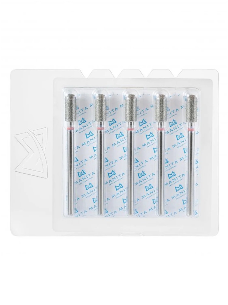 MANITA Фреза алмазная цилиндр закругленный для аппаратного маникюра 856.104.141.090.040 ФАЦС-4,0 9М, красная насечка, ø 4,0 мм, 5 шт. 28337 4 фото