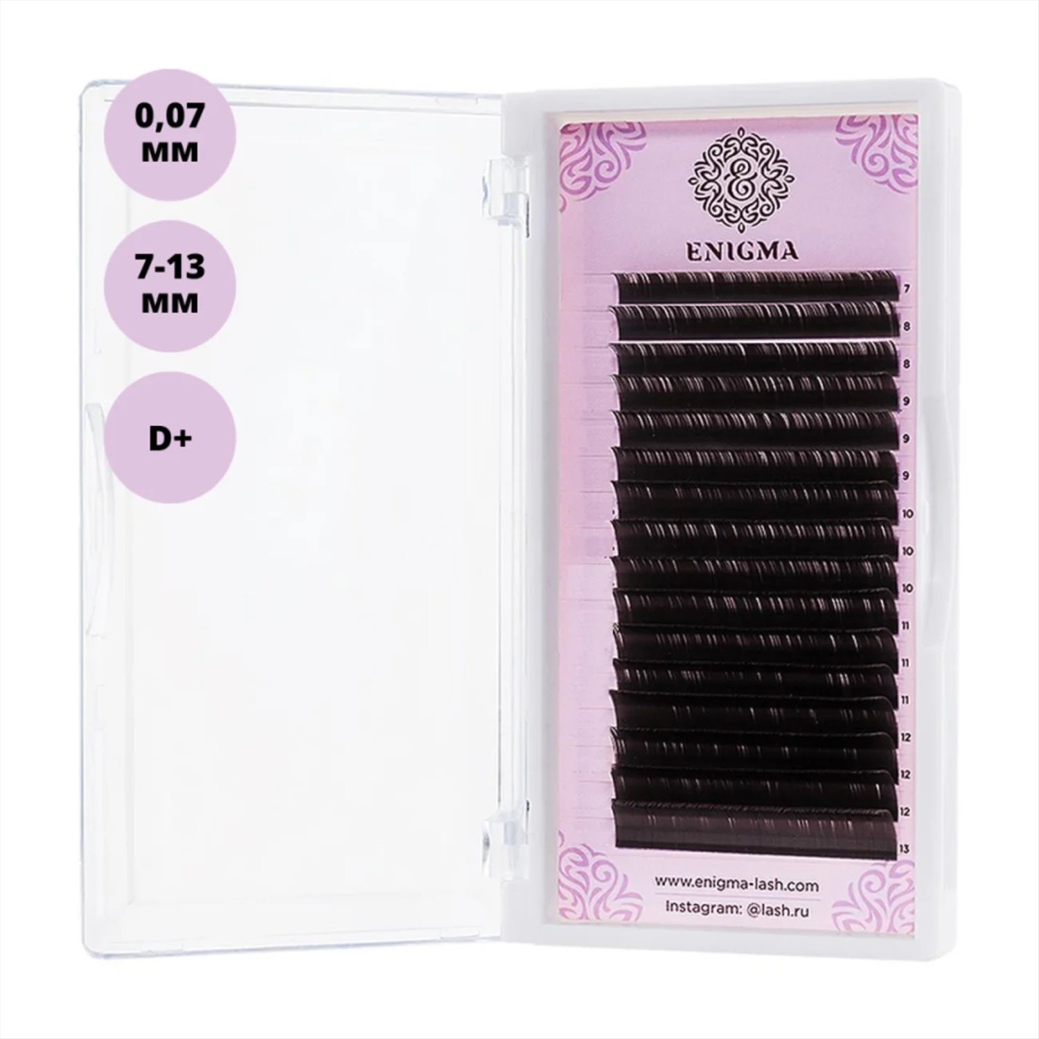 Enigma Ресницы на ленте Микс 16 линий 7-13 мм, D+, 0,085 мм, черный 11758