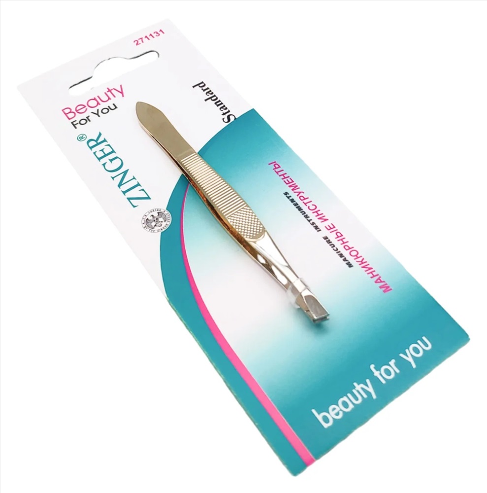 Zinger Пинцет для бровей скошенный T-079-HG / Standard 86079 HG, золотистый 2846