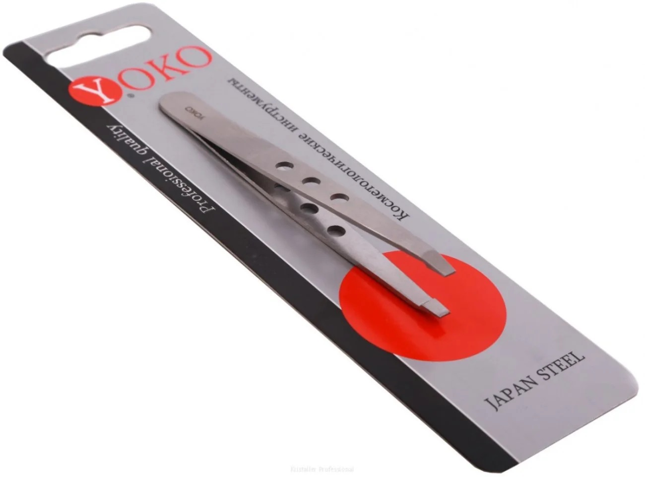 YOKO Пинцет косметический для коррекции бровей скошенный / Ellis by Yoko RP 014, серебристый матовый, 9,5 см 24660
