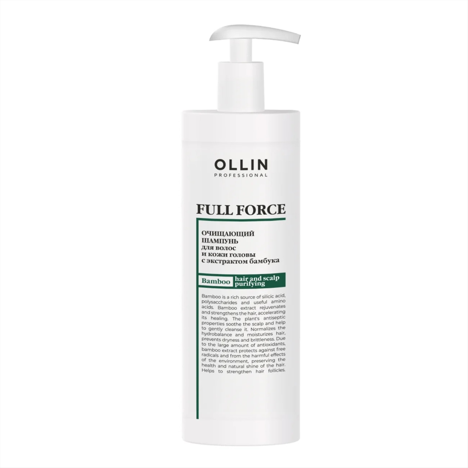 Ollin Очищающий шампунь для волос и кожи головы с экстрактом бамбука / Full Force Hair & Scalp, 400 мл 8426