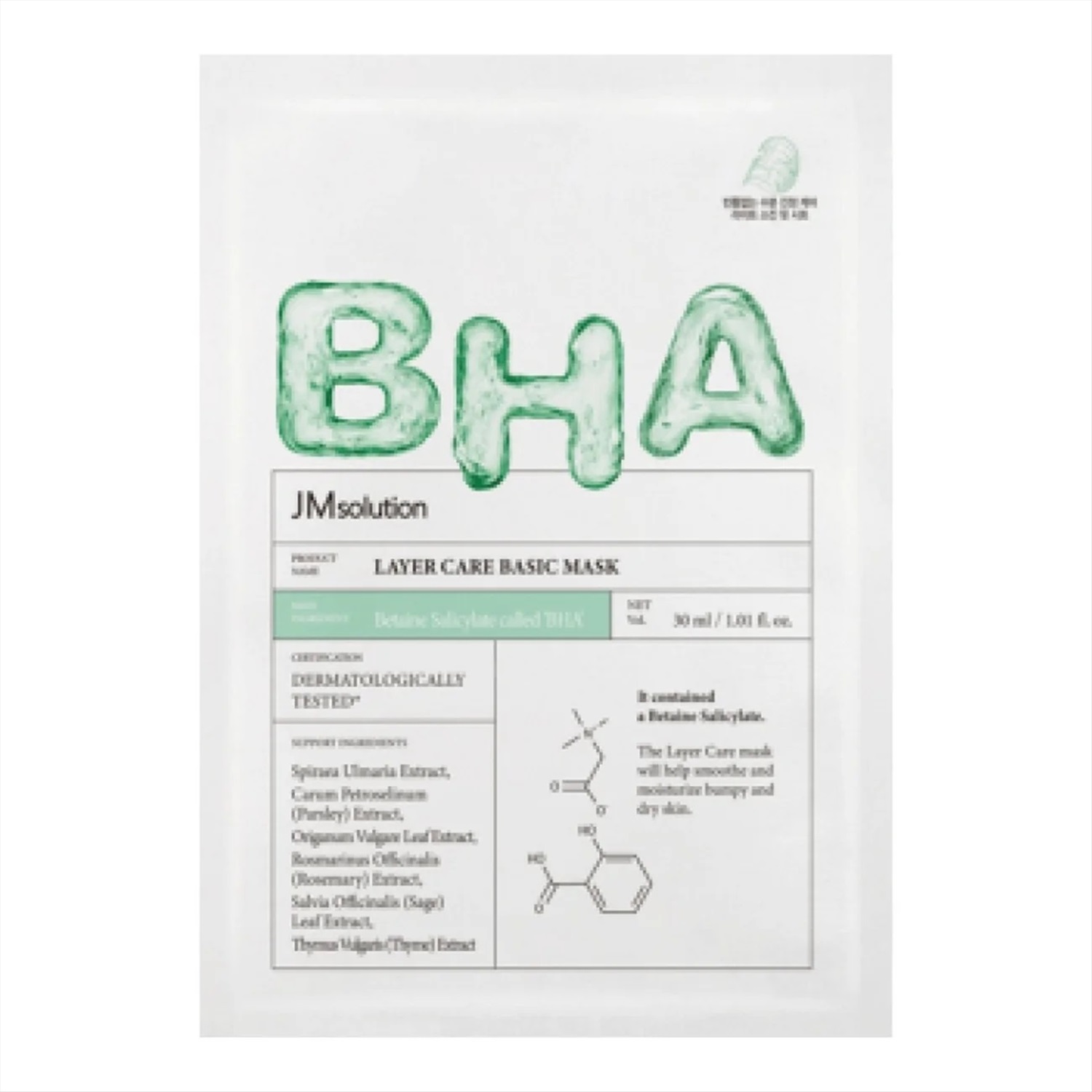 JMsolution Ультратонкая тканевая маска для лица с BHA-кислотой для проблемной кожи / Layer Care Basic Mask, 30 мл 24424