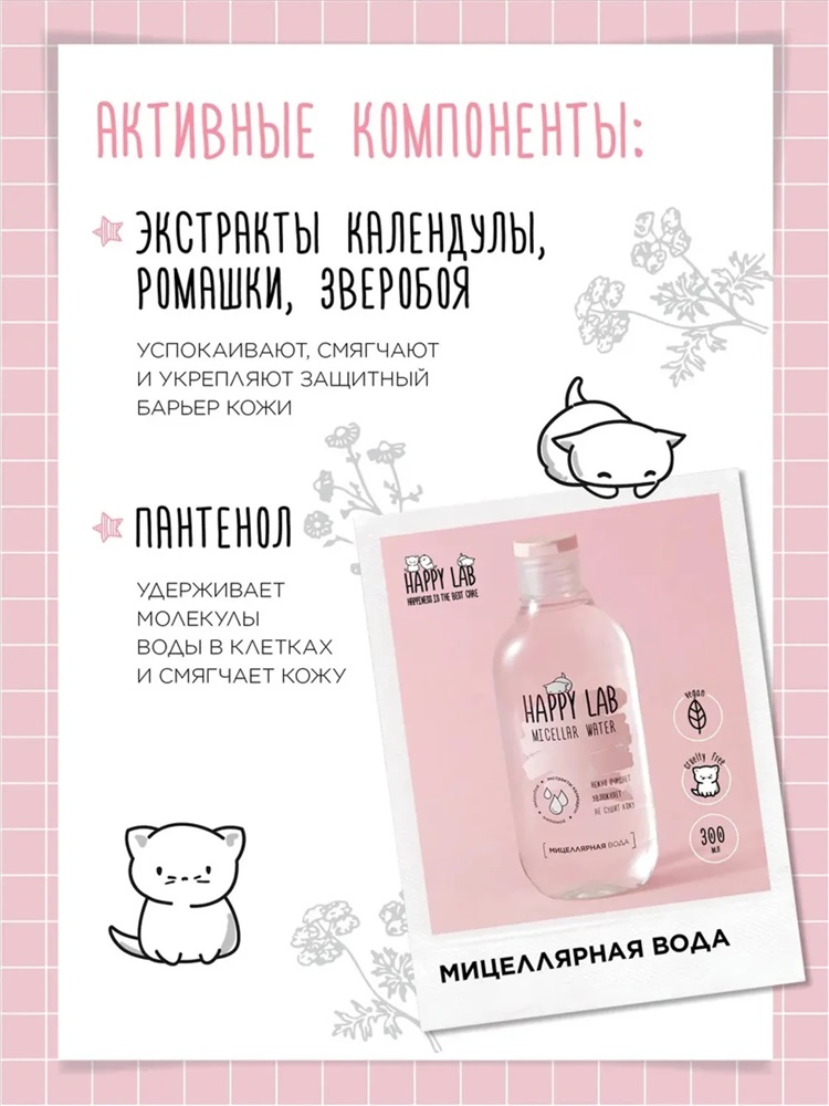 Happy Lab Набор средств для ухода за кожей лица Dream Face: Мицеллярная вода, гель для умывания, очищающая маска, 300 мл, 200 мл x 2 28084