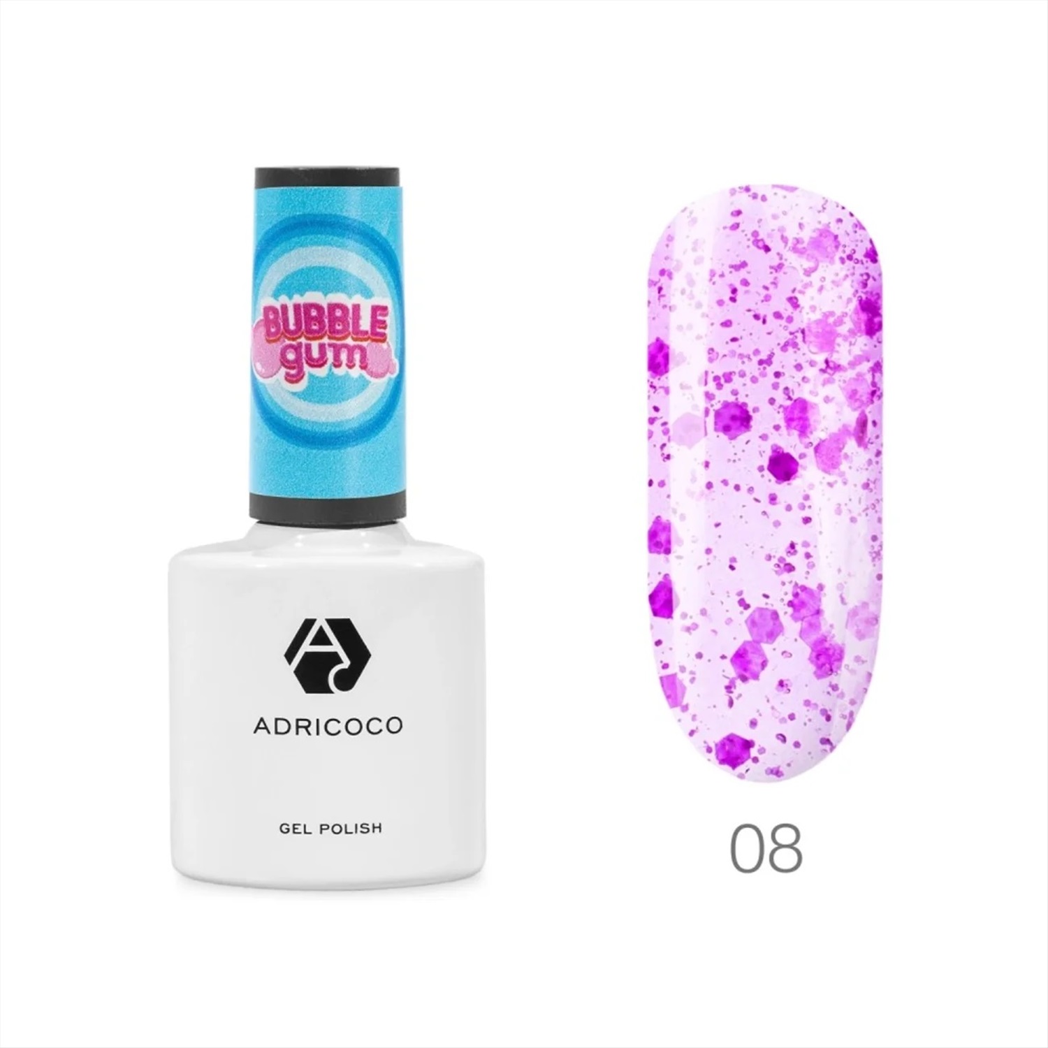 ADRICOCO Гель-лак для ногтей с цветной неоновой слюдой / Bubble Gum №08, взрывная ежевика, 8 мл 22538