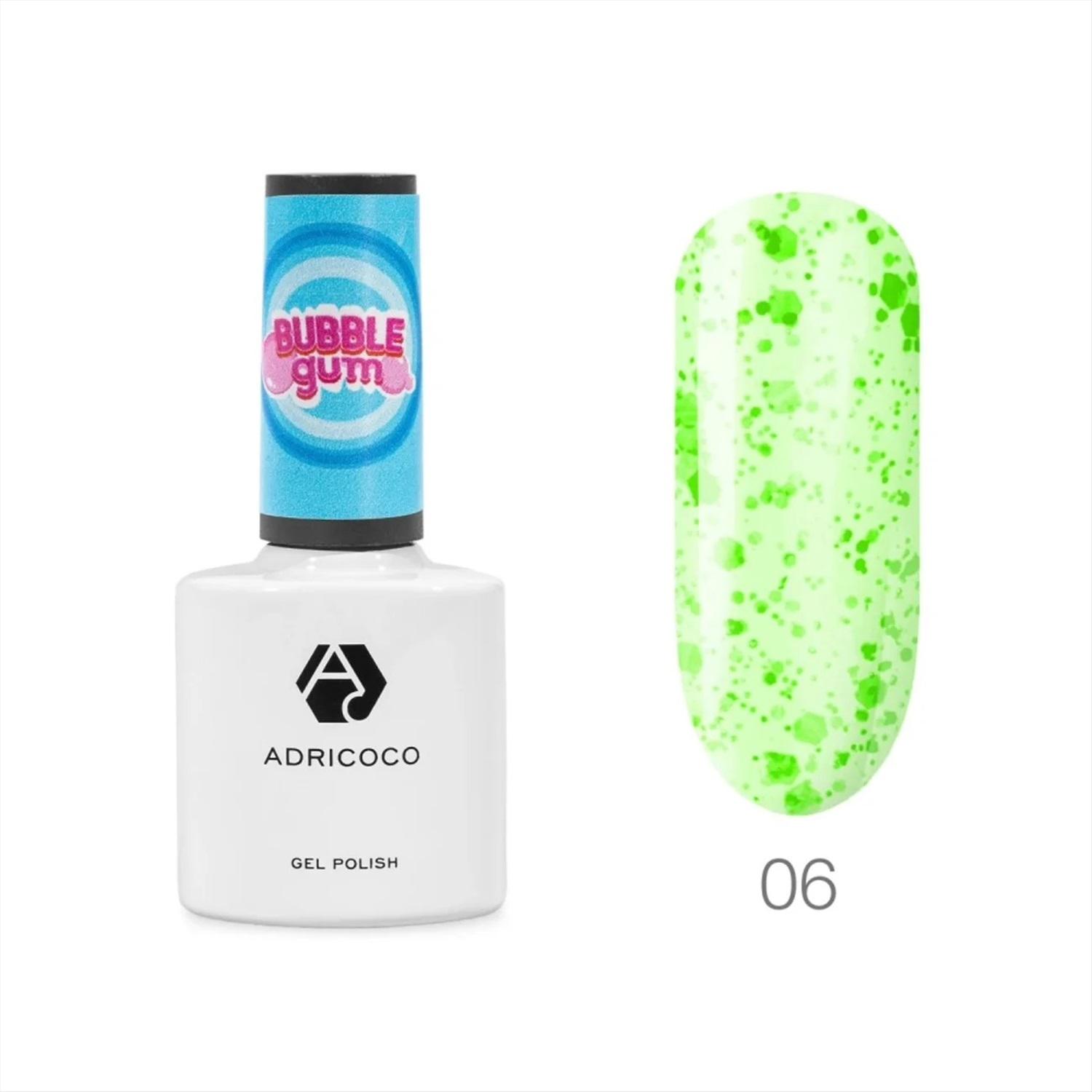 ADRICOCO Гель-лак для ногтей с цветной неоновой слюдой / Bubble Gum №06, бодрящий лайм, 8 мл 22536