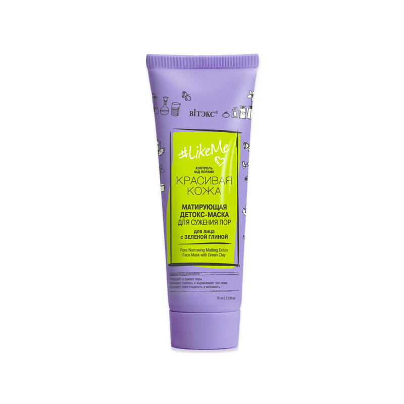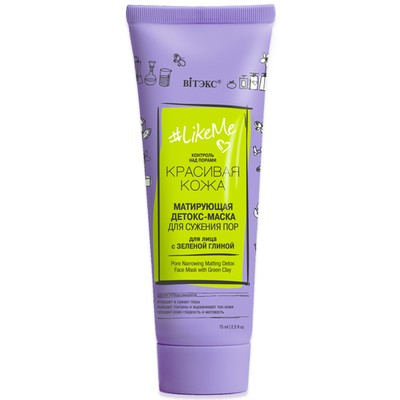 LikeMe Детокс-маска Матирующая для сужения пор для лица с зеленой глиной 75мл 2 фото