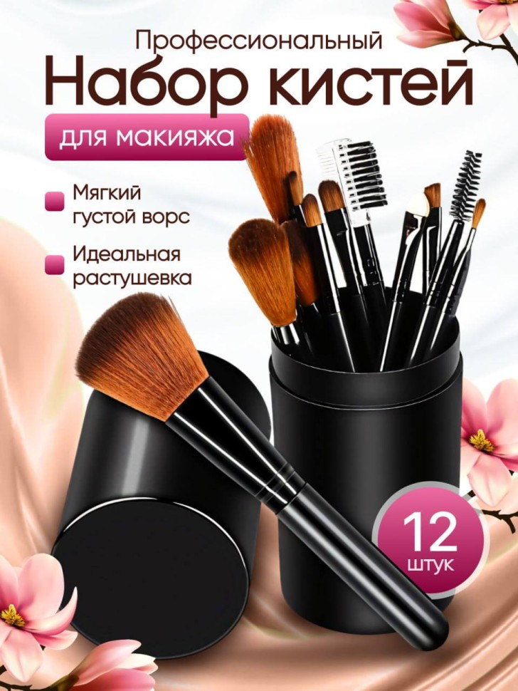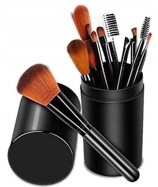 Набор  кистей для макияжа в тубусе 12шт, Чёрные 6 фото