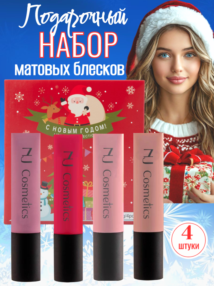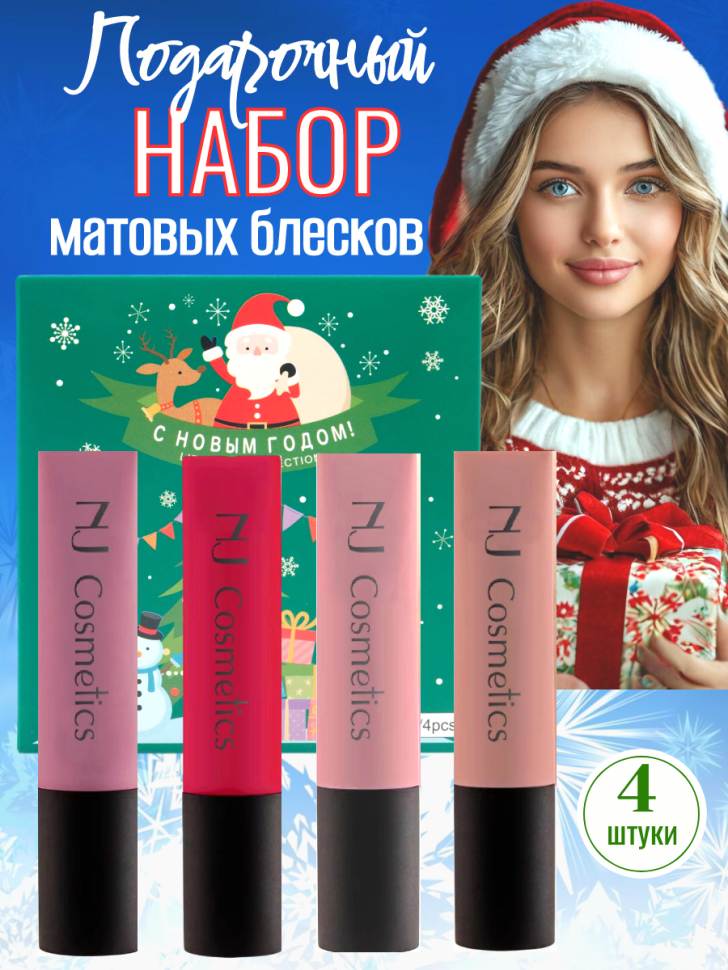 NJ Cosmetics Подарочный набор матовых блесков для губ, 4 шт 6 фото