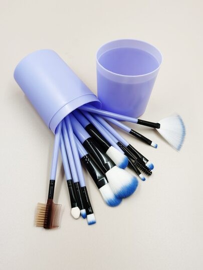 Набор  кистей для макияжа в тубусе 12шт, Голубые 6 фото