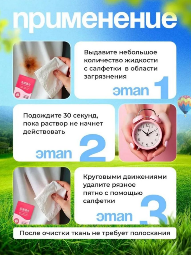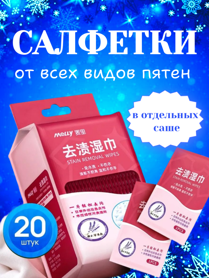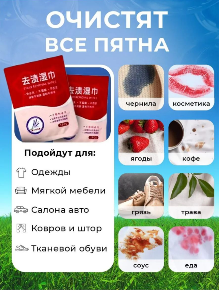 Влажные салфетки от всех видов пятен на одежде, обуви, мебели, ткани. 20 шт 4 фото