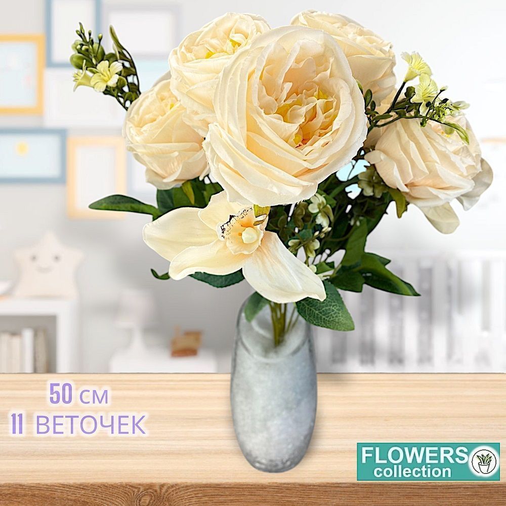 Розы молочные букет 9 голов, 50см , бутон 9см. 3 фото