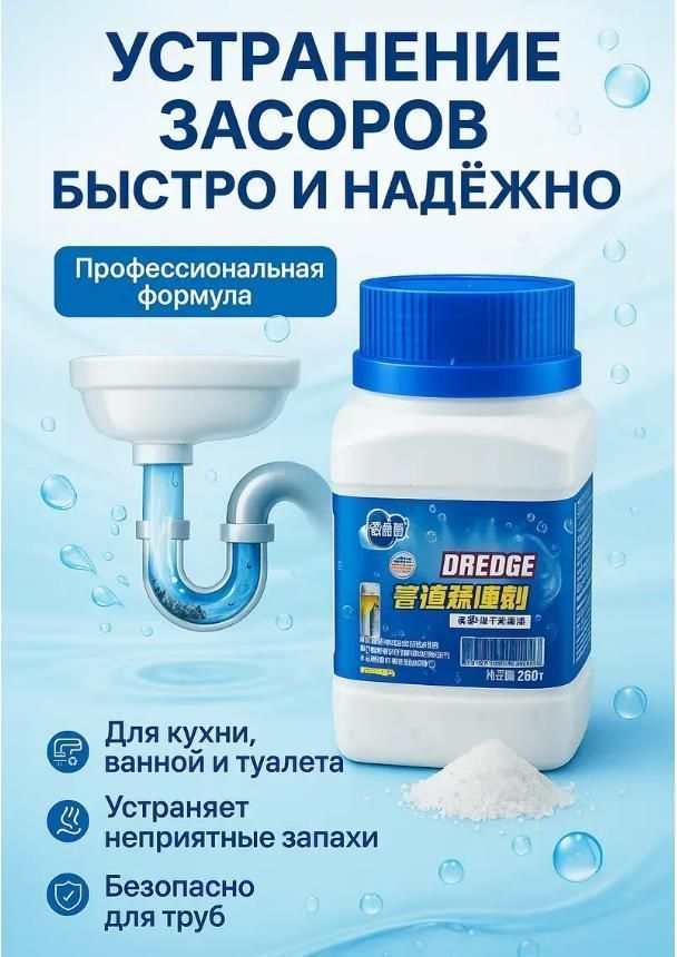 Средство от засоров,для прочистки ванны и труб 280г 3 фото