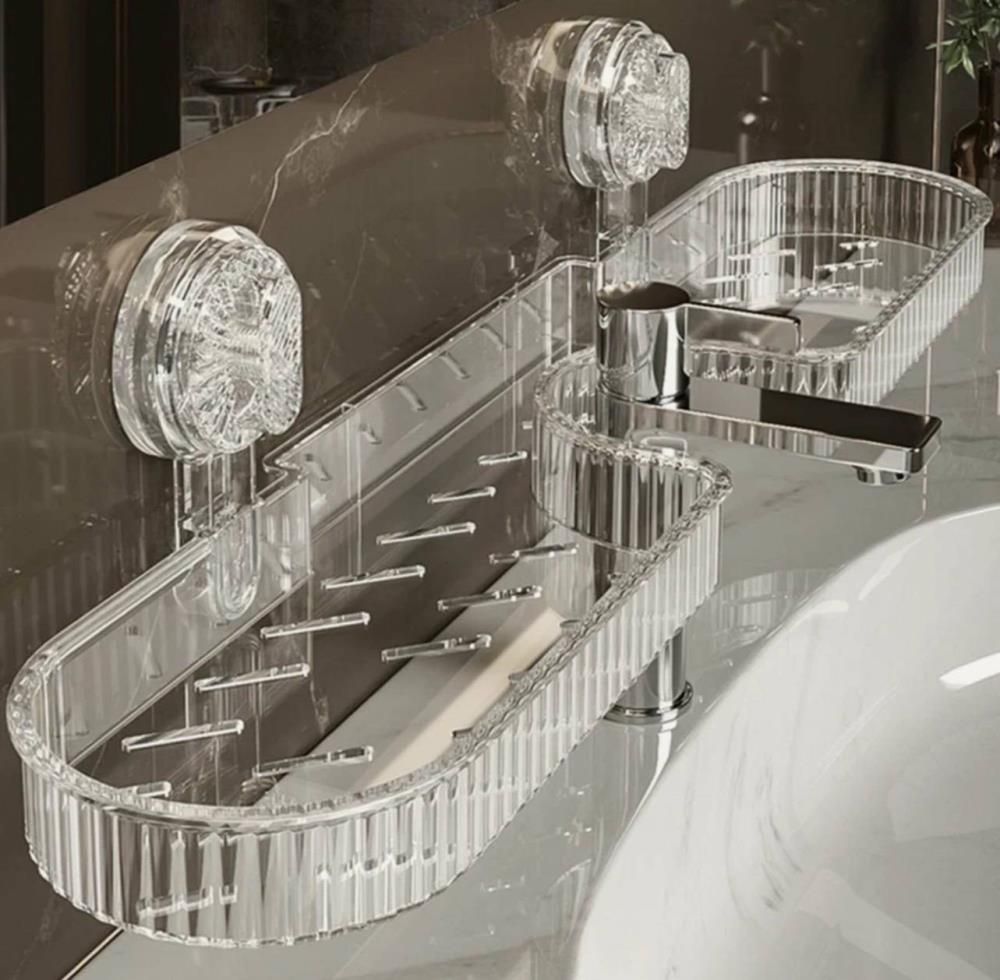 Полка настенная в ванную на вакуумной присоске, пластиковая, прямая под смеситель,без сверления стены
