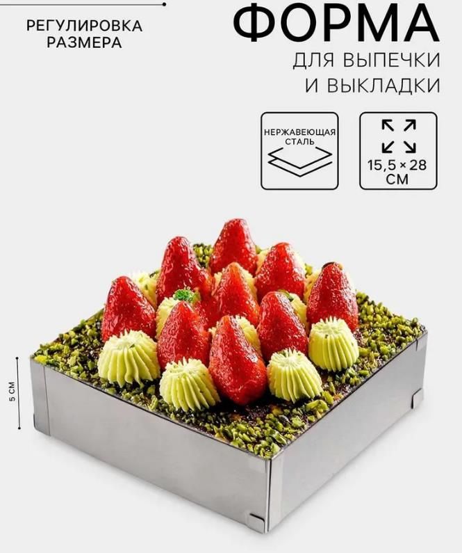Форма для выкладки и выпечки с регулировкой размера, 15.5*28 см, h 5 см