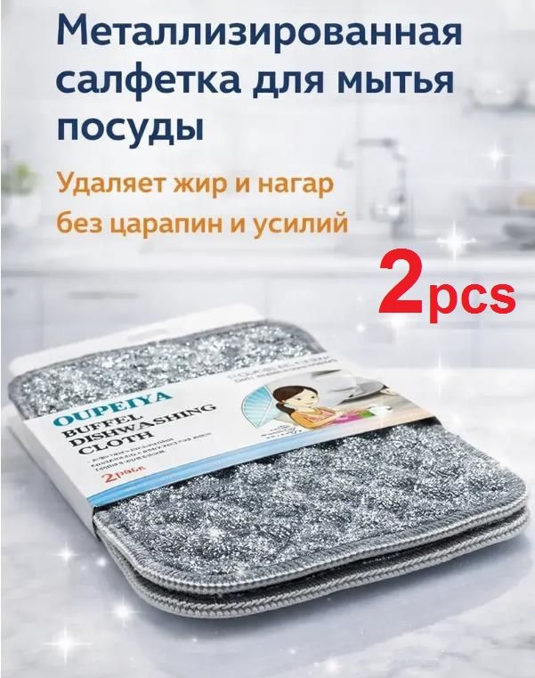Металлизированная двусторонняя мочалка для мытья посуды 2шт